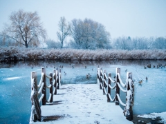 20张 雪中湖畔木桥与野鸭等4K风景壁纸 免费下载
