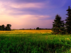 黄昏田野与松树的宁静风景4K风景壁纸 免费下载